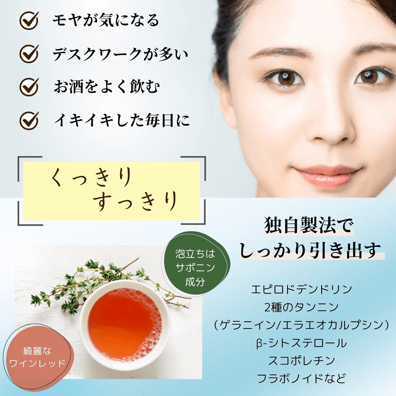 独自製法によって無添加ながら綺麗なロゼ色がかわいい健康茶です。